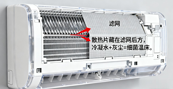 夏天一开空调,风里总裹着股酸腐的霉味,凑近闻还让人嗓子发紧——很多人第一反应是拆滤网洗,但晒得干干的滤网装回去,臭味照样飘出来。其实,空调发臭的“真凶”根本不是滤网,而是藏在滤网后面、你很少注意的散热片。